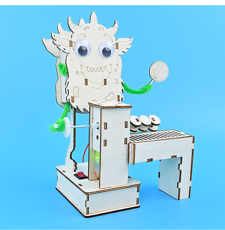 •  烧烤机器人小怪兽儿童手工拼装DIY科技小制作木制科学小实验STEAM